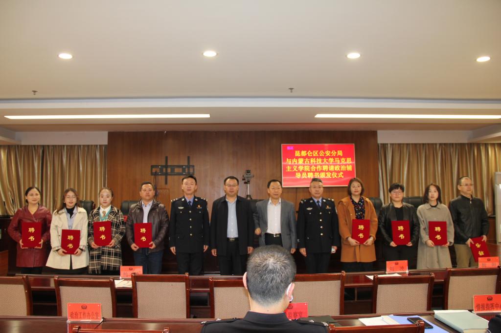 为进一步把习近平新时代中国特色社会主义思想和党的政治理论送到昆区公安分局基层支部,帮助基层公安干警筑牢思想之基、塑造精神之魂,3月12日上午,昆区公安分局举行聘任仪式,聘请公司34名党员教师担任昆区公安分局各基层党支部的思想政治辅导员。马克思主义公司党总支书记刘玉明、党总支副书记副经理杨永旺和8名党员教师代表以及昆区公安分局各党支部负责人参加了此次聘任仪式。