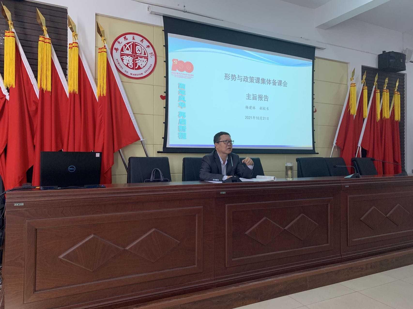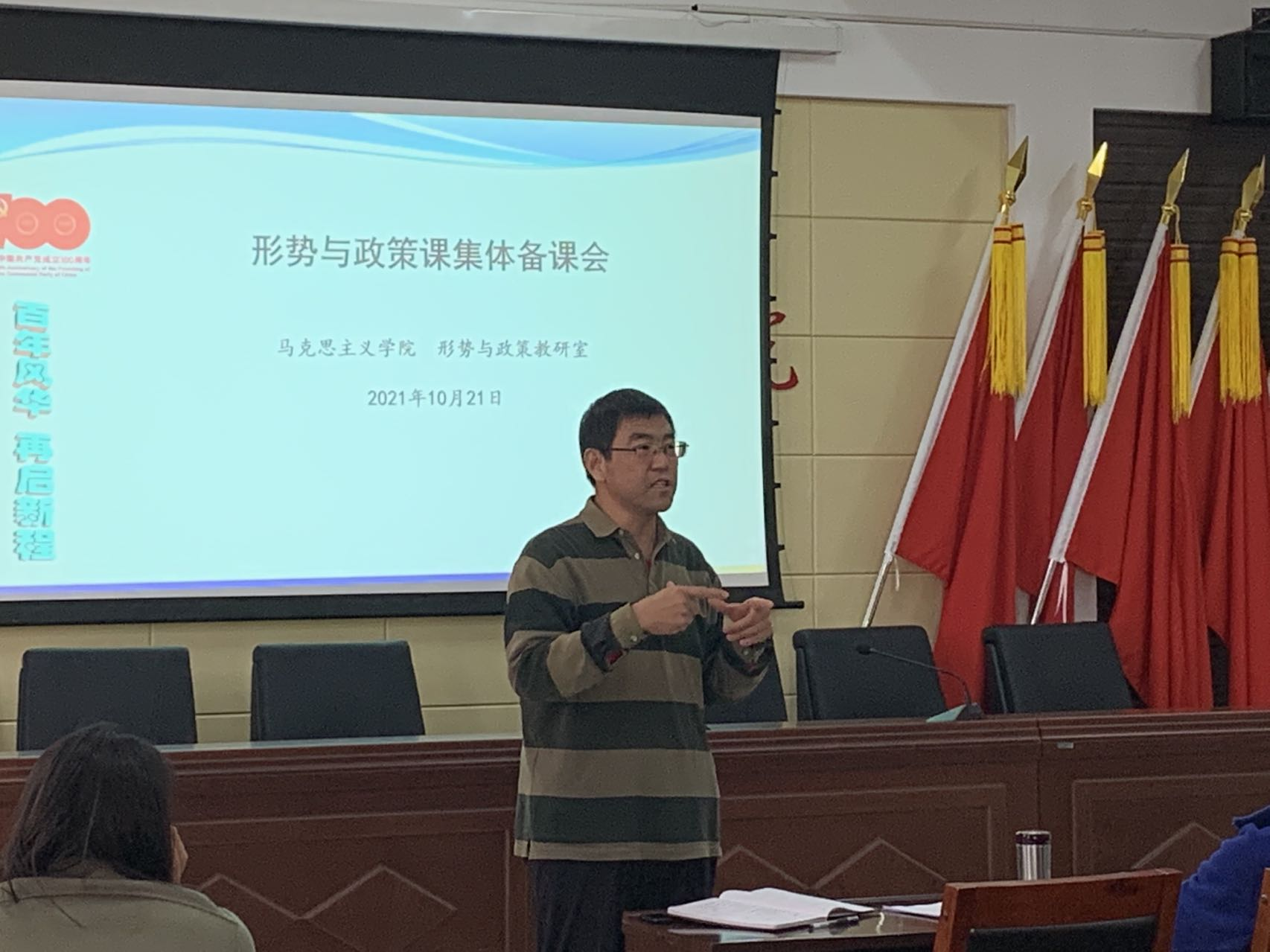 2021年10月21日下午,永利yl23411形势与政策教研室集体备课会在腾飞楼C座509举行。会议由教研室主任杨彦斌教授主持,党委委员、副董事长杨建林、部分二级公司党委书记、党总支书记、授课教师、形势与政策教研室全体教师参加。