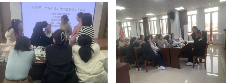 本次活动邀请到国家级形象设计评审员、包头市老年大学形设系讲师何恩玛老师为大家讲解如何做好日常护肤及生活彩妆的化妆技巧。活动吸引了众多女教工热情参与,现场的气氛热烈而温馨。