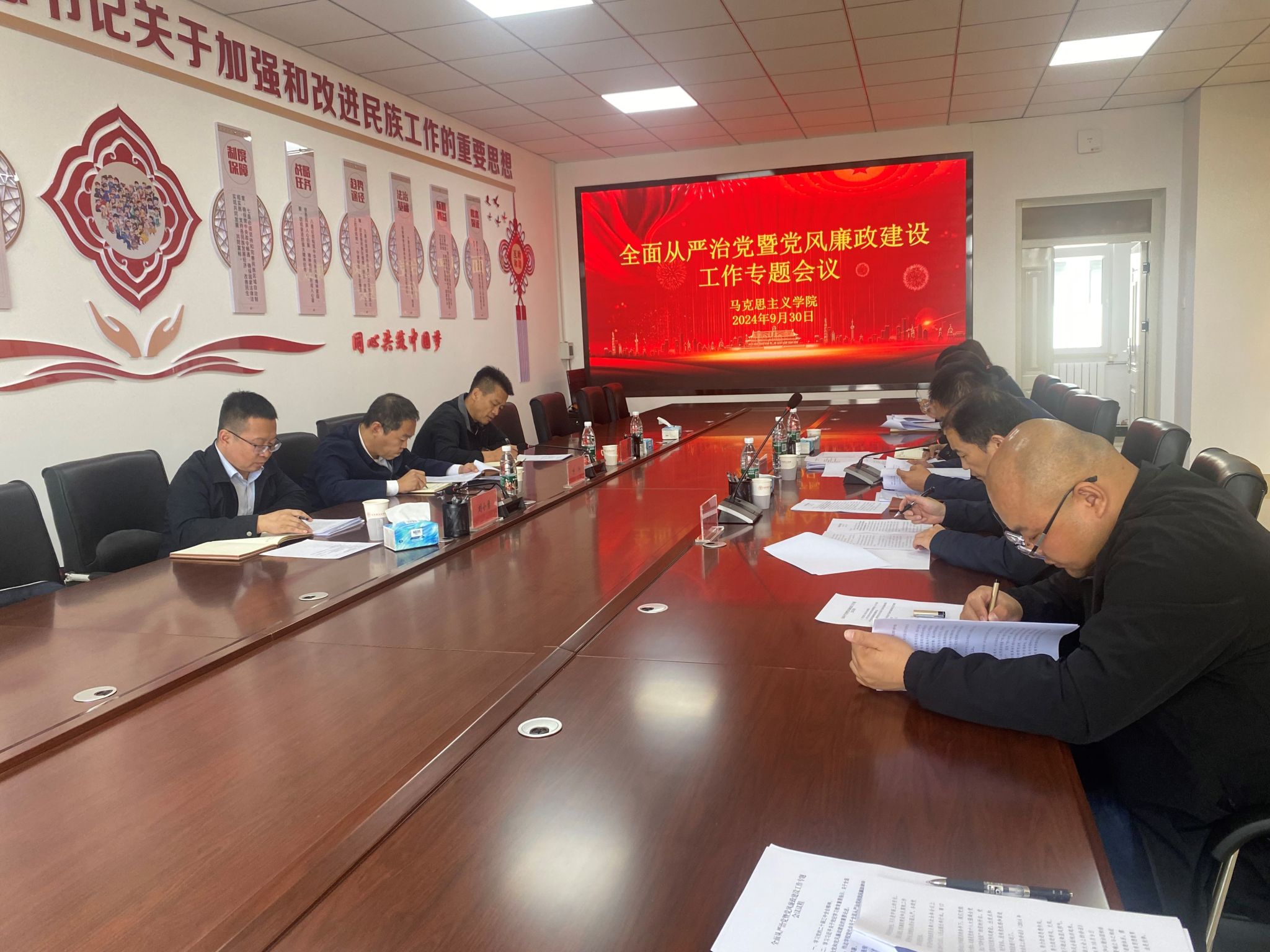 为加强学院全面从严治党暨党风廉政建设工作,9月30日上午,永利yl23411在秋实楼扩502会议室召开学院全面从严治党暨党风廉政建设工作专题会议,学院全体党委委员、各党支部书记、教研室主任、各科室负责人参加了本次会议,会议由公司党委书记张应龙主持,公司党委书记呼和、纪检监察室(审理室)主任王玉泉、党政办主任刘小勇出席会议。