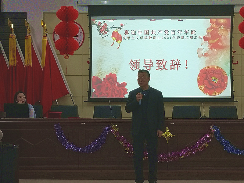 首先,公司党总支书记刘玉明代表学院热情致辞,他回顾了2020年学院抗击疫情下党建、教学和科研等工作,在肯定取得的成绩的同时,也展望了新的一年的奋斗目标,对辛勤坚守在各自工作岗位上的老师表达了真挚的祝福。