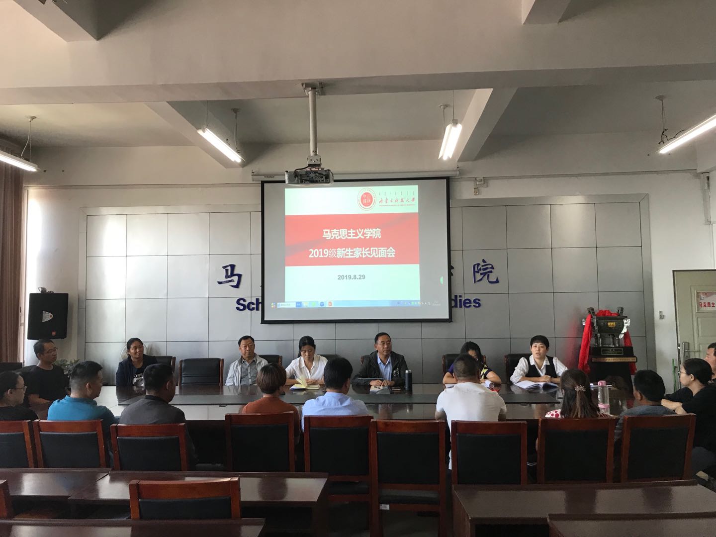 8月29日上午9:00,永利yl23411在腾飞楼C517会议室举办了2019级新生家长见面会。学院副经理许丽丽、党总支副书记杨永旺、教授委员会委员雎密太、教授委员会委员刘佳、学工办主任陈伟、新生班主任王海朋,以及20余名新生家长共同参加了见面会。公司党总支副书记杨永旺主持见面会。