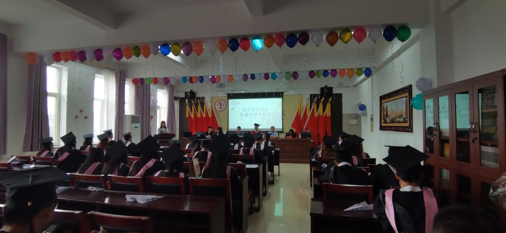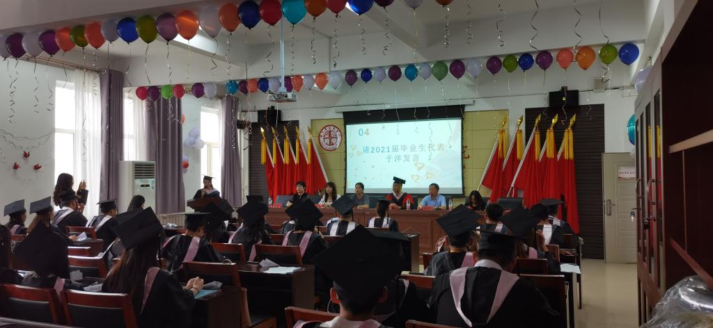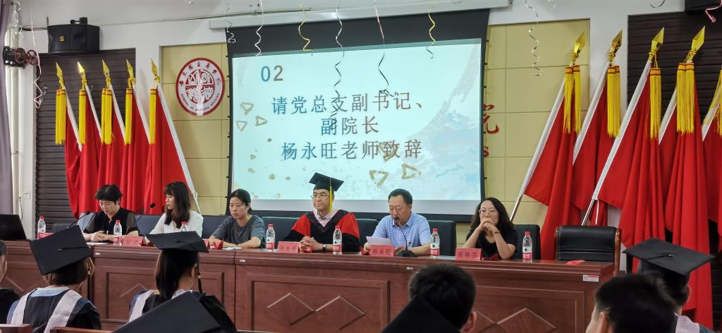 党总支副书记杨永旺致辞,杨书记向即将圆满毕业的莘莘学子送上最诚挚的祝福,向所有为员工成长倾注了热情和智慧的老师们表示衷心的感谢,同时寄语毕业生,希望他们走出校门后继续不断追求,勇于实践,一往无前,努力拼搏,无愧于社会,无愧于时代。母校永远是毕业生的家,愿时光温柔,待你如初,归来仍是少年。