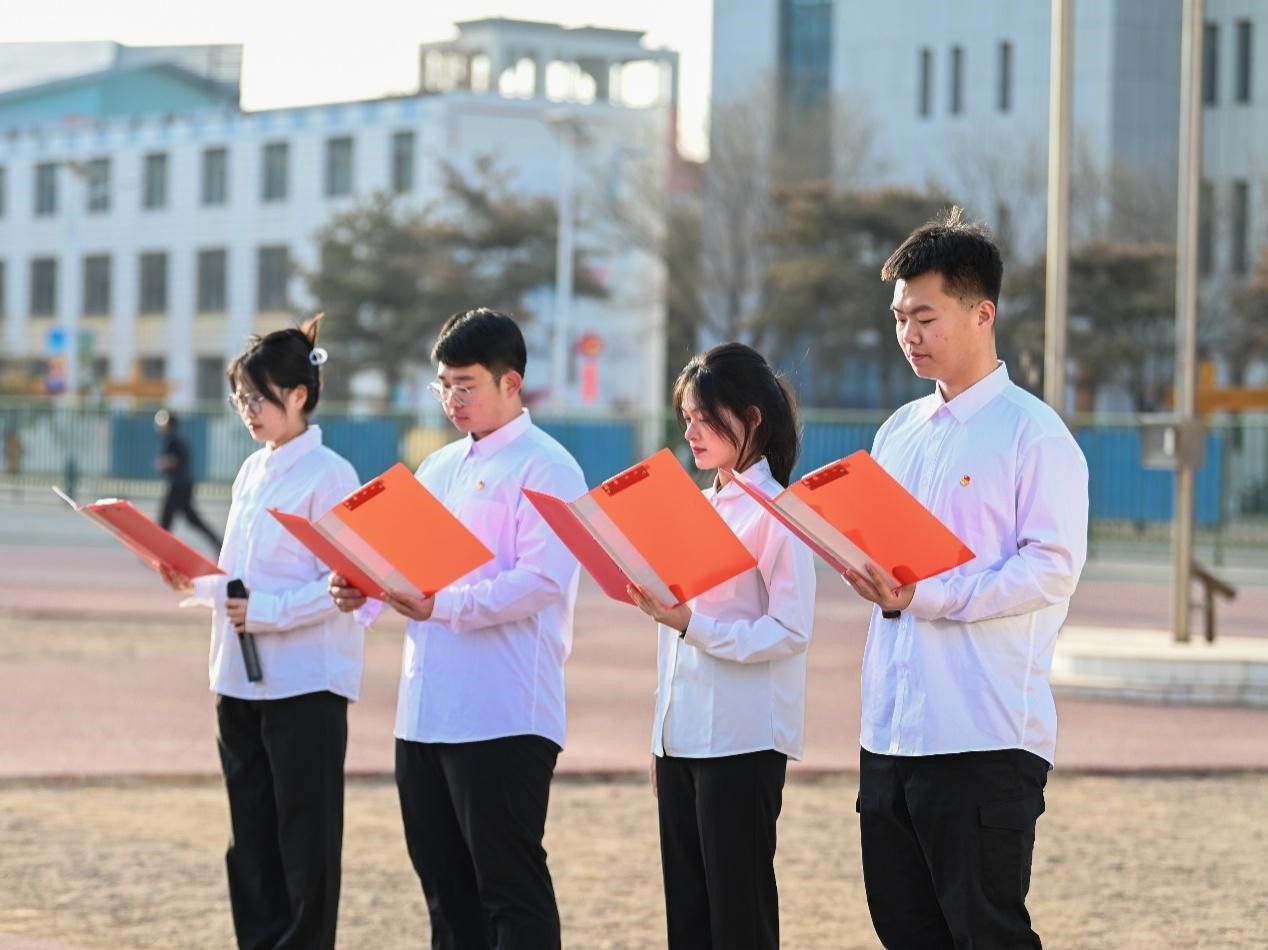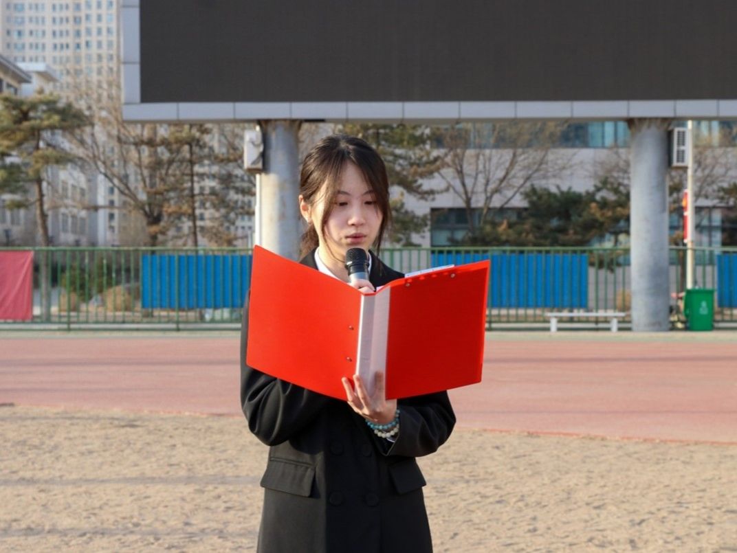 优秀员工代表于润晗在国旗下演讲,呼吁同学们缅怀革命先烈,发扬革命传统,将红色基因融入血脉、化为行动,在新时代焕发出璀璨的光芒。