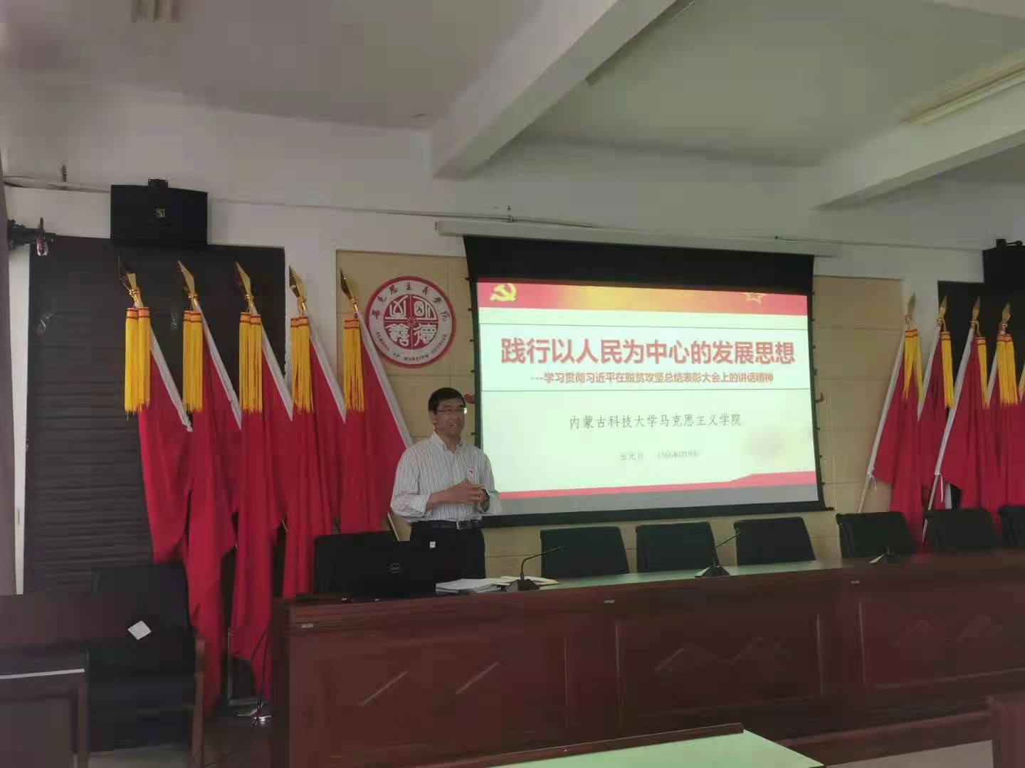 张光存经理首先传达了习近平在全国脱贫攻坚总结表彰大会上的讲话精神,并为老师们详细讲解了习近平总书记关于扶贫工作的重要论述,脱贫攻坚战的主要内容和成就,以及在脱贫攻坚战中形成的脱贫攻坚精神。接着,张经理又结合自己在脱贫攻坚一线工作了三年的经历和感受,阐述了如何做好脱贫攻坚与乡村振兴的有效衔接,以及实施乡村振兴战略的重要意义。脱贫攻坚就是践行以人民为中心的发展思想,让贫困群众真正摆脱贫困,过上“两不愁三保障”的好日子,增强人民群众的获得感、幸福感,走上全面小康、共同富裕的康庄大道。