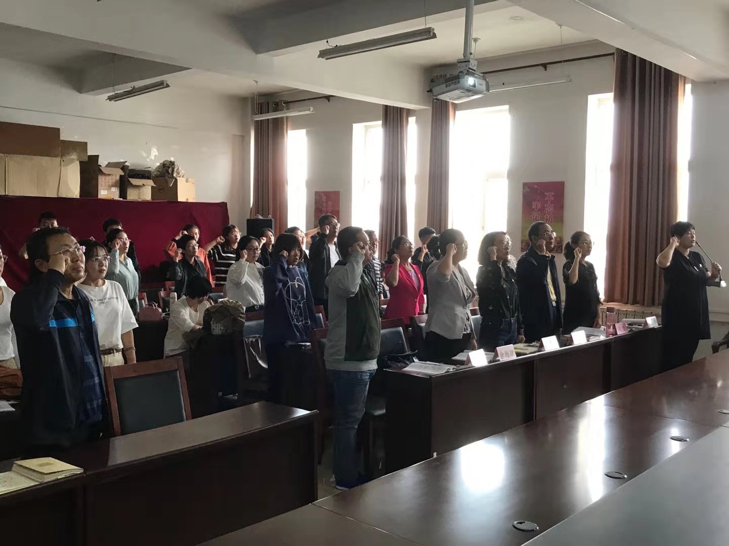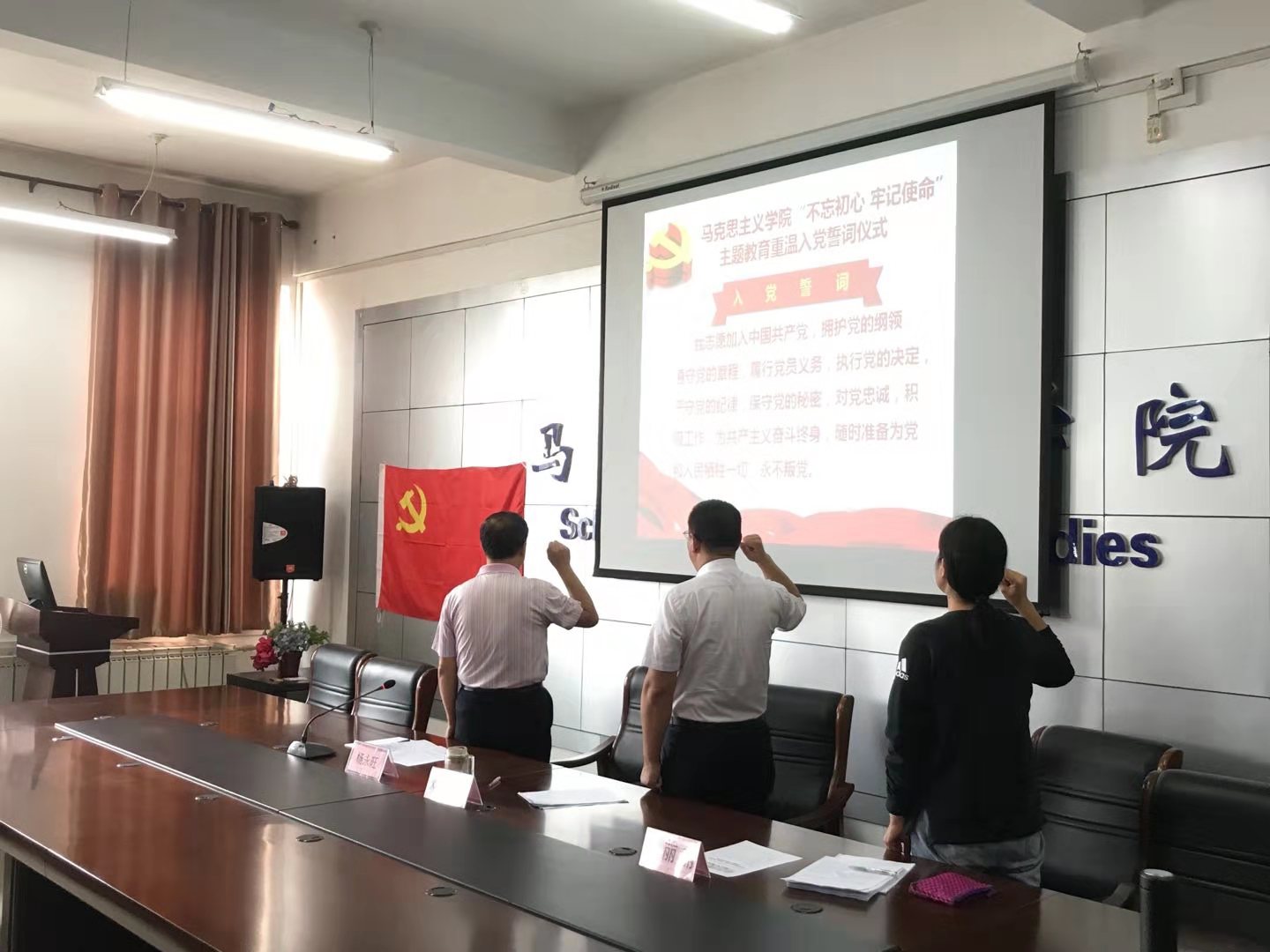 随后,全体党员同志面向党旗集体重温入党誓词,党总支组织委员陈伟领誓。