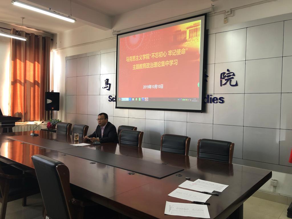刘玉明通报了近期主题教育进展情况,指出自学校、学院动员大会以来,经过封闭式集中学习、讨论、观看红色影片、进行实地教育等,学院主题教育正在深入推进,并得到自治区主题教育第二巡回指导组的肯定。