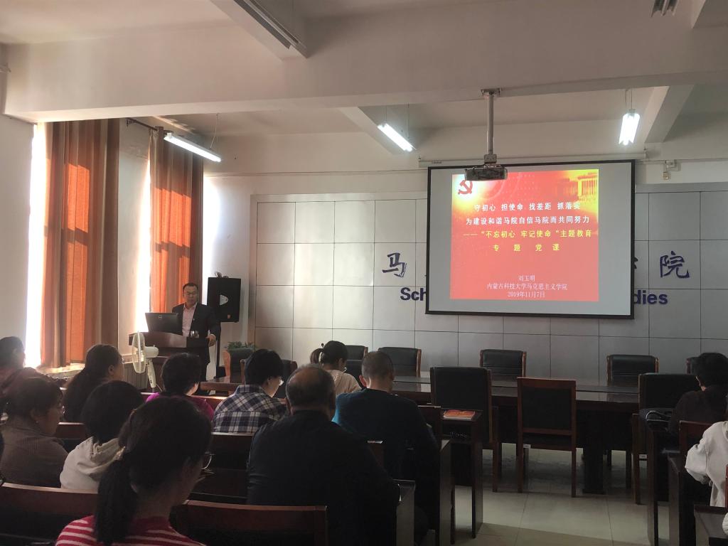 11月7日下午,党总支书记刘玉明在腾飞楼C517会议室作了题为《守初心担使命找差距抓落实 为建设和谐马院而共同努力》的专题党课。