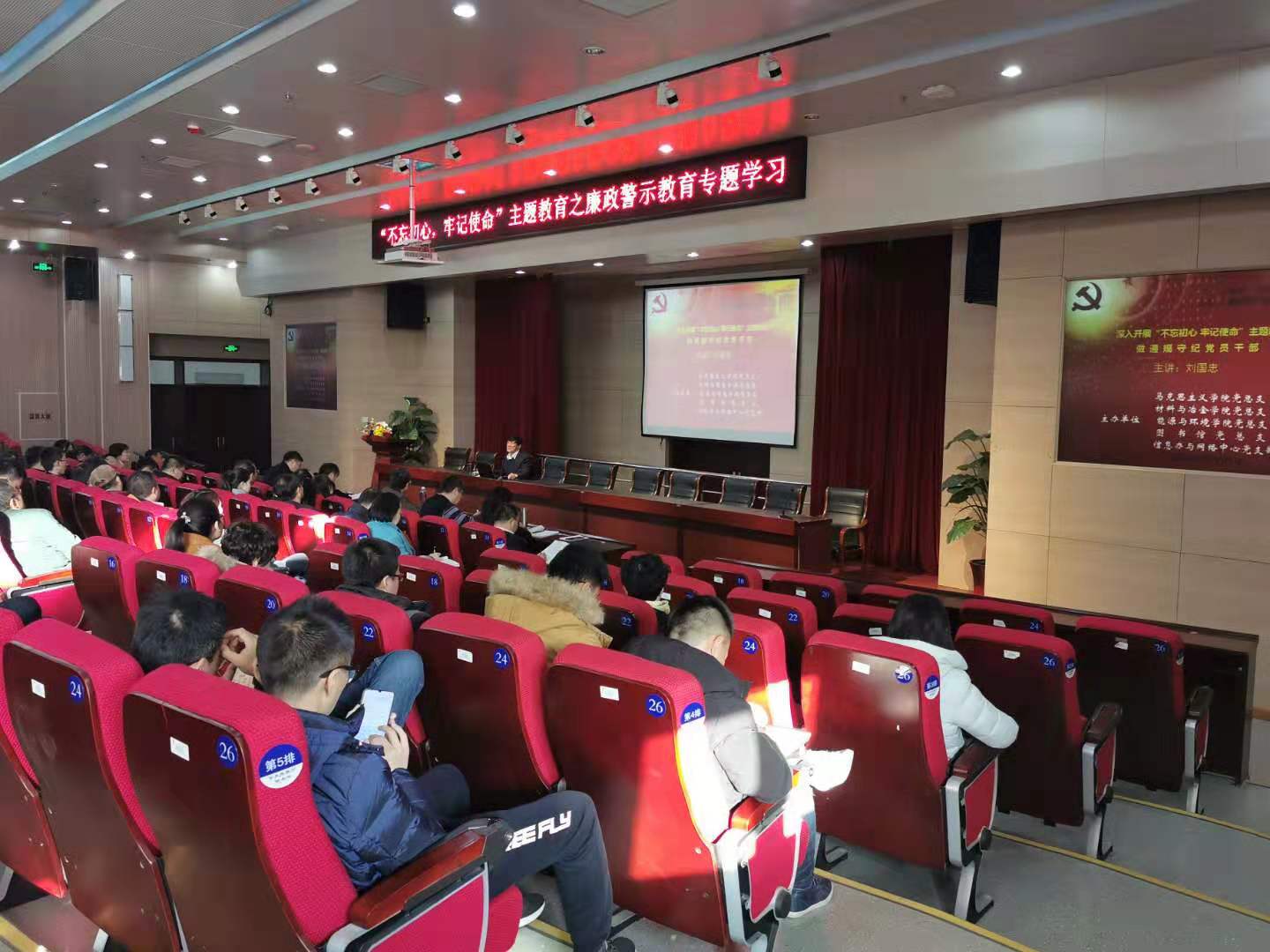 为深入推进党风廉政建设,筑牢拒腐防变的思想防线,11月22日下午,永利yl23411在图书馆A201报告厅主办了“不忘初心、牢记使命”主题教育廉政警示专题学习。包头市纪委监委处级检察员刘国忠作了题为《深入开展“不忘初心、牢记使命”主题教育 做遵规守纪党员干部》的专题讲座。
